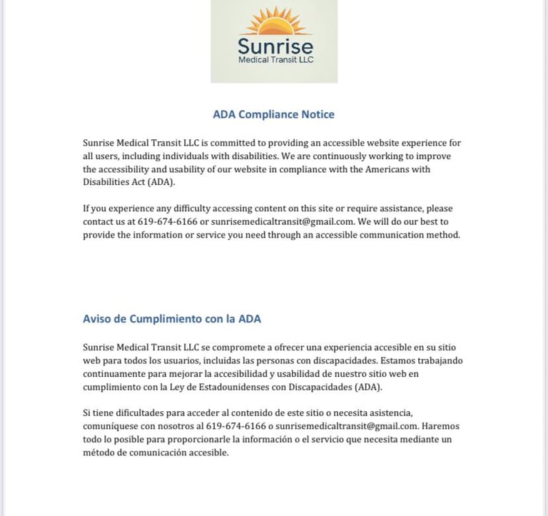 Thank you for trusting Sunrise Medical Transit LLC. We look forward to serving you and becoming your preferred transportation provider.